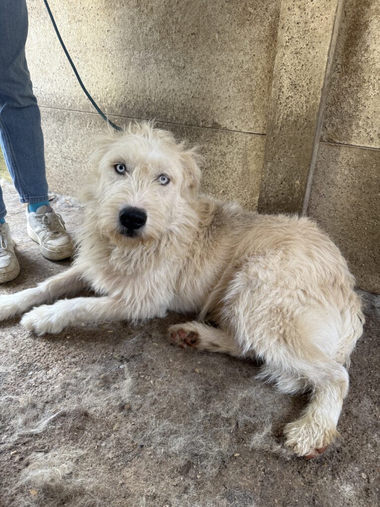 Die wunderschöne Hajnalka wurde gemeinsam mit ihrem Sohn Harmat auf der Straße gefunden, als er noch ein Welpe war. Man merkte sofort, dass sie bisher nicht viel kennenlernen durfte und nur wenig Kontakt zum Menschen hatte. Vielleicht hat sie auch nicht nur gute Erfahrung mit uns Zweibeinern gesammelt, denn Hajnalka war sehr ängstlich. Die neue Lebenssituation war zusätzlich für beide eine große Herausforderung und die zwei waren sehr eingeschüchtert und zurückhaltend.