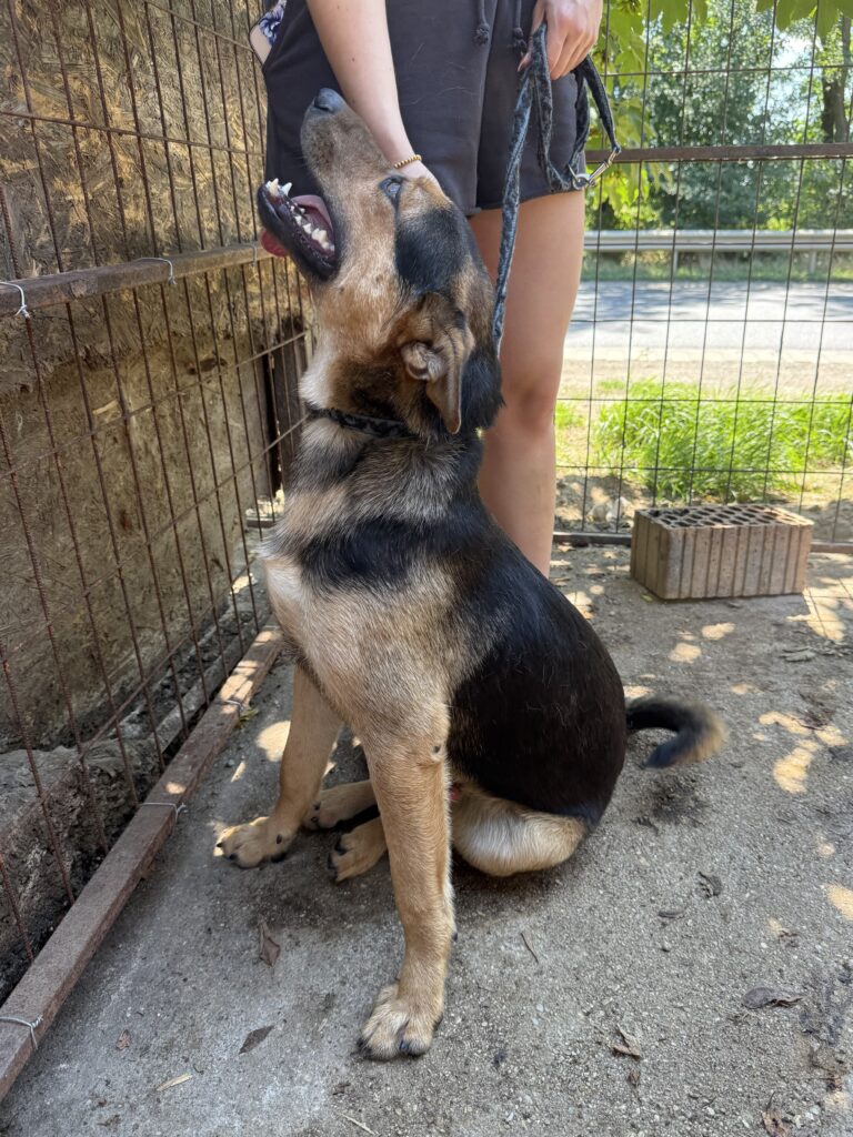 Jankó wurde als 3 Monate alter Welpe einsam an einem Fluss gefunden. Die erste Zeit durfte er bei der Tierheimleitung zuhause leben, aber musste nun leider ins Tierheim umziehen. Für einen aktiven jungen Hund der absolut falsche Platz.