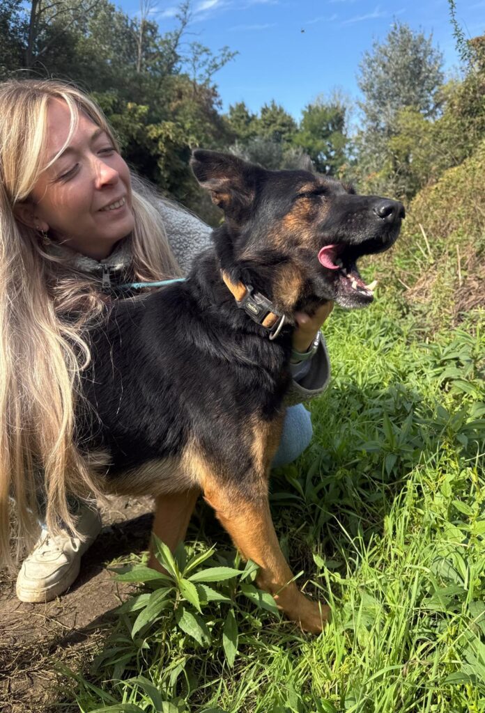 Damit sie sich gut entwickeln kann, wünscht sie sich eine artgerechte Auslastung. Dazu gehören neben ausreichend Bewegung auch geistige Beschäftigung wie z. B. Nasenarbeit oder andere gemeinsame Aktivitäten. Sie möchte gefordert und gefördert werden und gemeinsam mit ihren Menschen lernen. Zukünftige Halter sollten sich auf jeden Fall mit den typischen Eigenschaften eines Schäferhundes auseinandersetzen. Diese Hunde sind intelligent, aufmerksam und spielen besonders in größeren Hundegruppen gerne mal „das Ordnungsamt“. Dieses Verhalten können wir bei Boni aktuell nicht beobachten, dennoch sollte man wissen, was rassetypisch möglich ist und entsprechend vorbereitet sein. Wir nehmen Boni insgesamt als eine sehr angenehme, tolle und unkomplizierte Hündin wahr.
