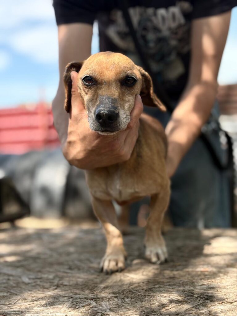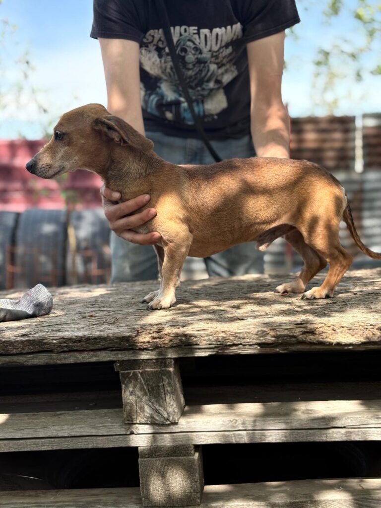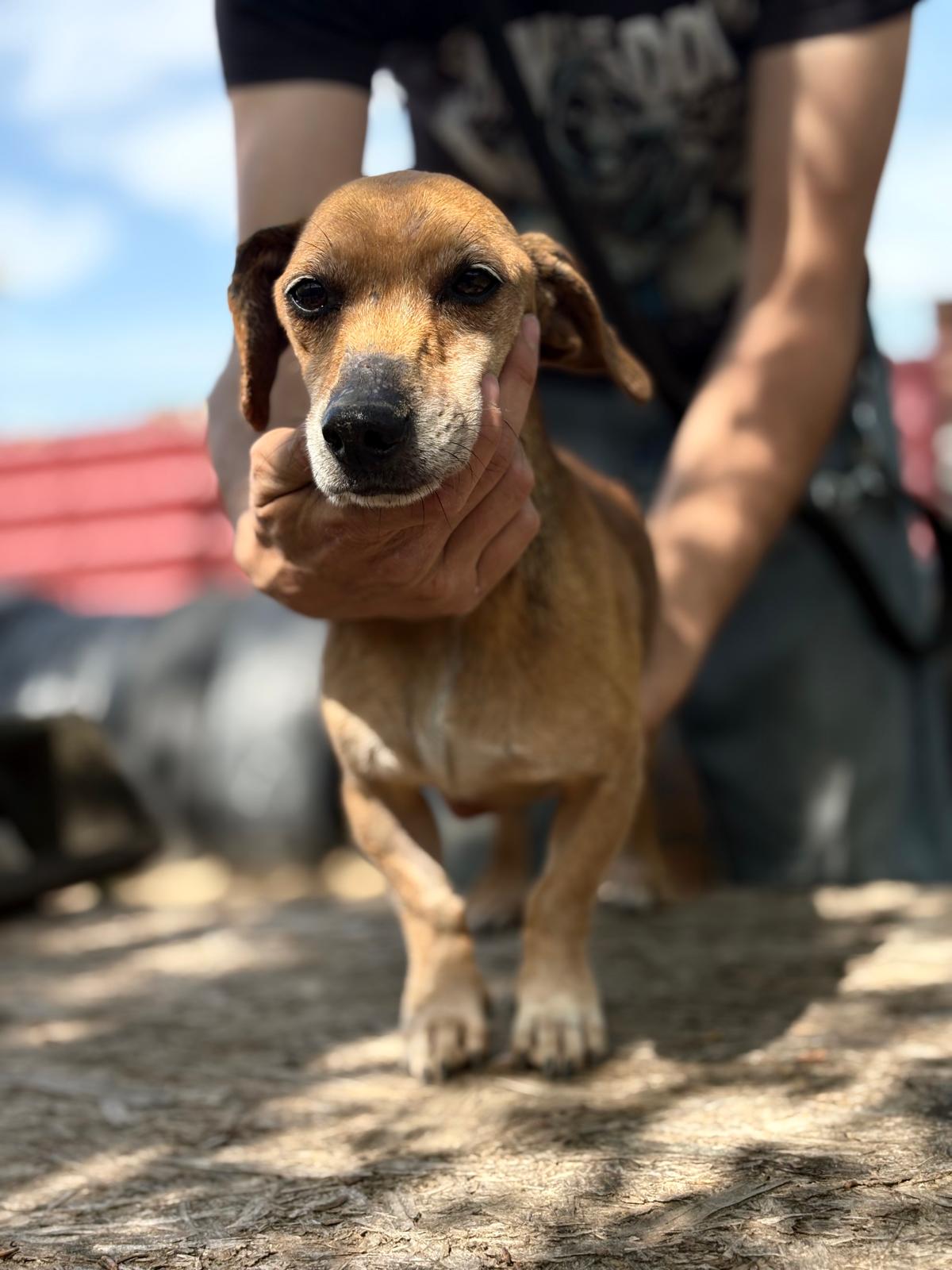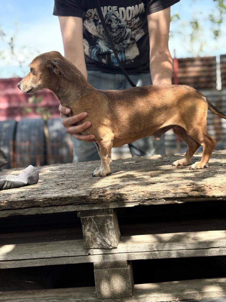 Dumbi ist ein herziges Kerlchen. Freundlich, lieb, munter und aufgeschlossen zeigt er sich im Tierheim, bei fremden Menschen auch mal kurz schüchtern, was sich aber schnell legt. Streicheleinheiten mag er sehr und hätte gerne mehr davon, auch Aufmerksamkeit und Menschen, die für ihn da sind, möchte er nie mehr missen. An der Leine laufen klappt schon ganz gut und seine neuen Zweibeiner sollten Freude daran haben ihm noch liebevoll den Rest vom Hundeeinmaleins beizubringen. Ob da mal der bekannte Dackelsturkopf zum Vorschein kommt? Aber auch für einen kleinen Hund wie Dumbi gelten die gleichen Regeln wie für seine großen Artgenossen. Über hundegerechte Auslastung, geistig wie körperlich, würde er sich bestimmt freuen, wenn er sich in Ruhe eingelebt hat. Mit seinen Artgenossen versteht er sich gut und wird aktuell (23.4.2026) in ein gemischtes Rudel integriert.