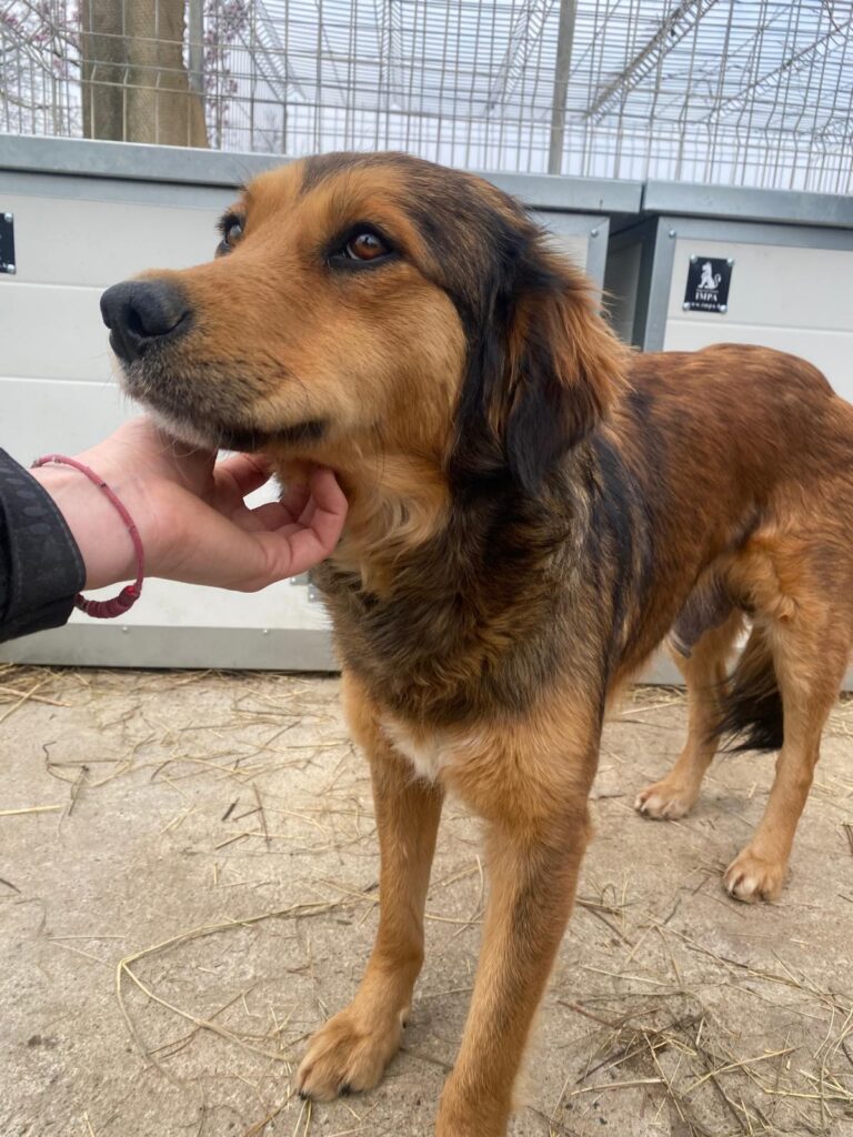 Obwohl Fiona zunächst sehr vorsichtig war, hat sie nach nur wenigen Minuten im Zwinger den Schritt zu uns gemacht – trotz der vielen fremden Menschen um sie herum. Sie zeigt damit, dass sie bereit ist, erneut Vertrauen zu fassen, wenn man ihr mit Geduld und Einfühlungsvermögen begegnet. Fiona ist eine zarte, sanfte Hündin, die einfühlsame, ruhige Menschen braucht, die ihr Zeit lassen, sich in Ruhe einzugewöhnen. Eine eher ruhige Umgebung, gerne mit Garten, in dem sie in ihrem eigenen Tempo ankommen kann, wäre ideal.